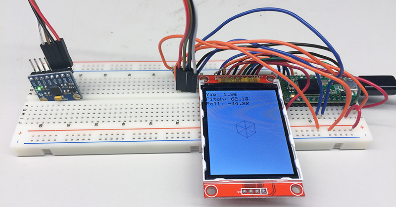 Setup showing rotating cube based on the readings from the IMU